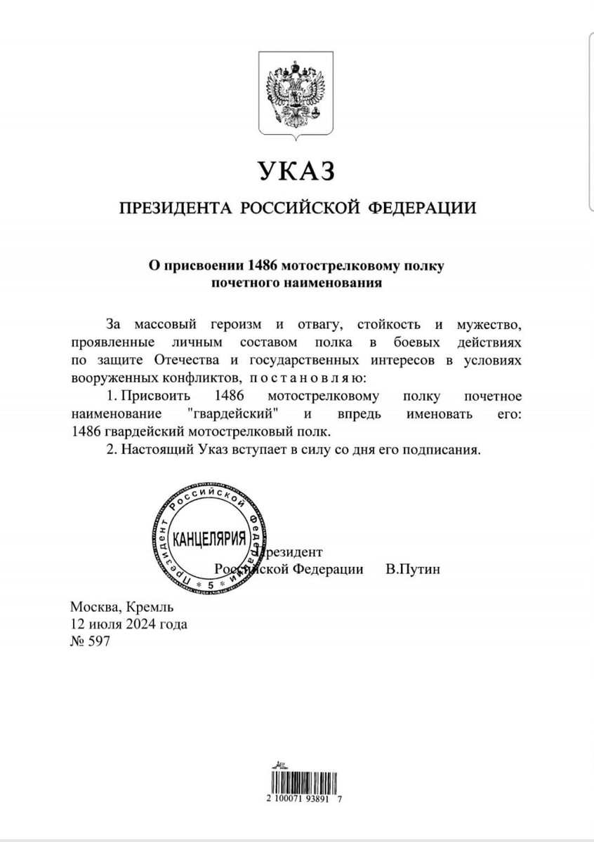 Ленинградскому полку присвоено почетное наименование «гвардейский». Поздравляю наших бойцов с этим знаменательным событием. Вы — настоящие герои и доблестные защитники Родины. Гордимся! Победа будет за нами.