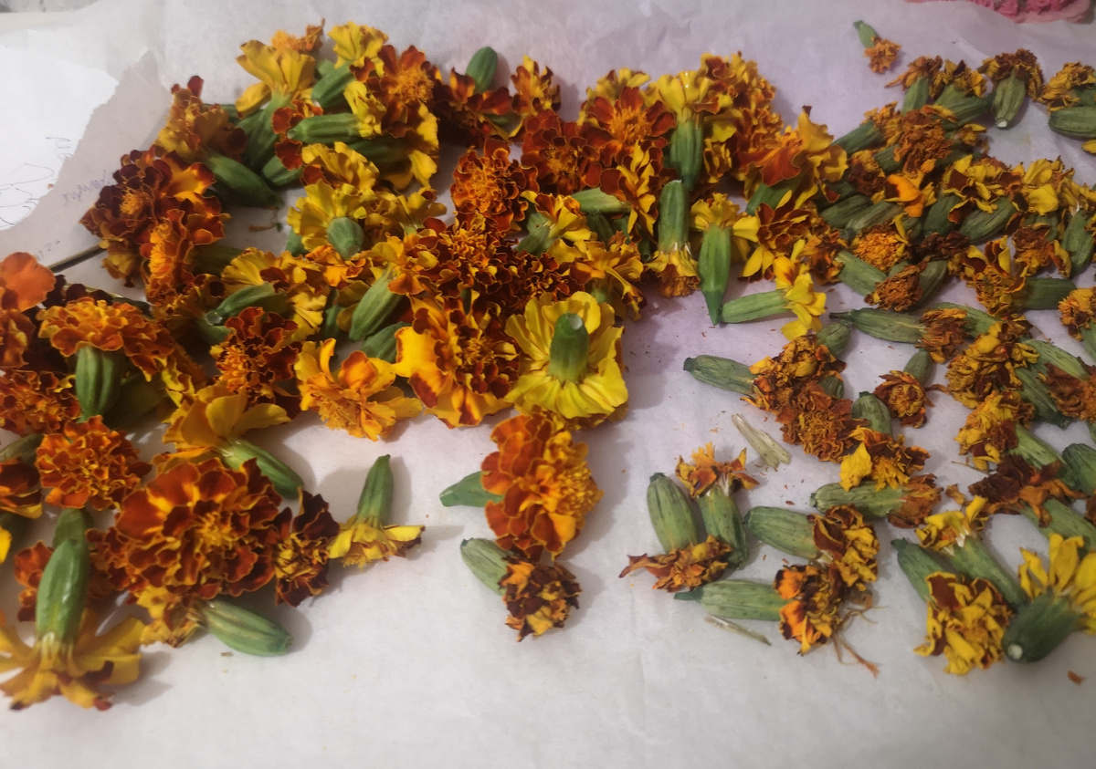 В этом году я посеяла бархатцы и в очередной раз благодарю тех, кто мне это посоветовал, потому что я попробовала чай из цветов и была приятно удивлена, теперь сушу их