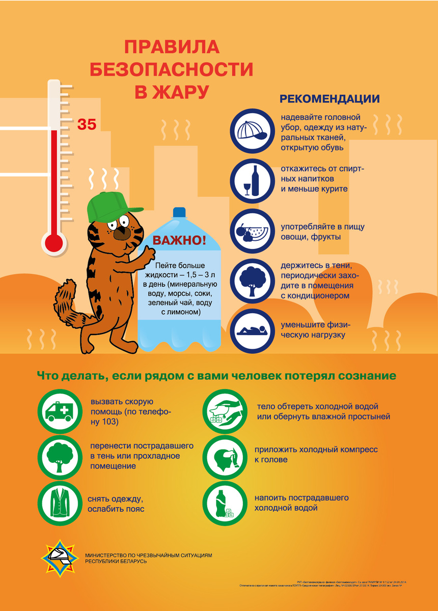 🧢👒 Носим головные уборы, пьем больше воды, меньше находимся на солнцепеке.