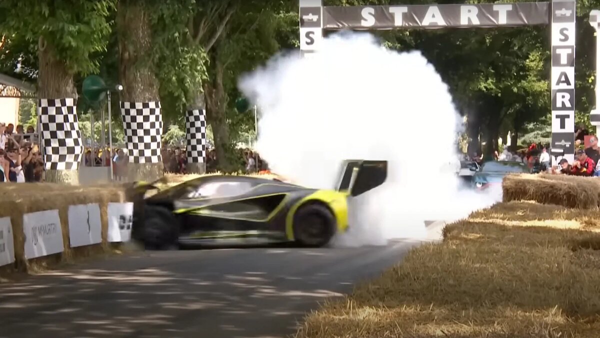 Компания Lotus привезла на Фестиваль скорости в британском Гудвуде уникальный суперкар на электротяге под названием Evija X — считается, что он существует в единственном экземпляре и стоит примерно 2,3 миллиона долларов. Суперкар принял участие в традиционной фестивальной гонке с заездом на холм, но смог проехать лишь несколько десятков метров по стартовой прямой. На появившемся в Сети видео хорошо видно, что Evija X сначала скрывается в густом облаке дыма от горящих покрышек, после чего резко поворачивает вправо и утыкается в ограждающие трассу тюки сена. Насколько можно судить по ролику, пострадали только детали кузова в передней части и, возможно, некоторые компоненты силовой системы. Капсула салона не затронута, пилот остался невредим. Официально причина аварии пока не озвучена, но по предварительной версии, к столкновению привёл сбой в программном обеспечении, нарушивший работу силовой установки. Evija X комплектуется теми же моторами, что и гражданский Lotus Evija. Четыре двигате