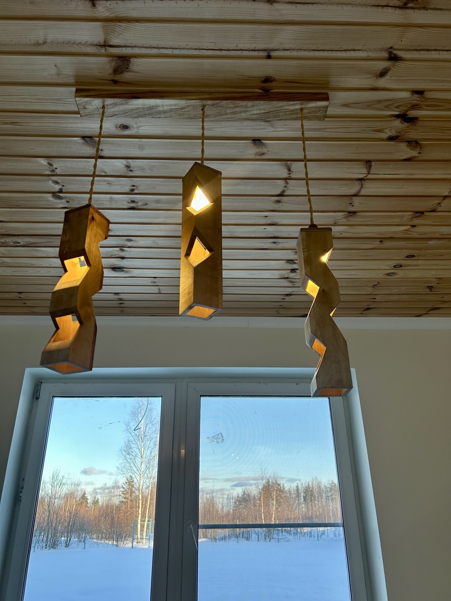 Сегодня я хочу поделиться с вами проектом, который принес мне огромное удовольствие – это создание уникального потолочного светильника, который теперь стал настоящей изюминкой интерьера. Процесс начался с идеи: я хотел сделать что-то нестандартное, что привнесет в пространство теплый свет и станет центральным элементом дизайна. Итак, выбор пал на дерево с его теплым оттенком и приятной текстурой. Затем я приступил к лобзику и тщательно вырезал абстрактные, причудливые формы, которые бы создавали динамичные тени. Для добавления интереса и игры света, я вырезал несколько отверстий в каждом светильнике, чтобы свет пробивался наружу и создавал уютную атмосферу. Просто сказочное зрелище, когда они включены в вечернее время! Финишную отделку выполнил натуральным маслом, которое подчеркнуло красоту натурального дерева и защитило его. Вешая их на потолок, я подумал о безопасности, поэтому выбрал крепкие подвесы и уделил особое внимание надёжности креплений. В результате получился набор