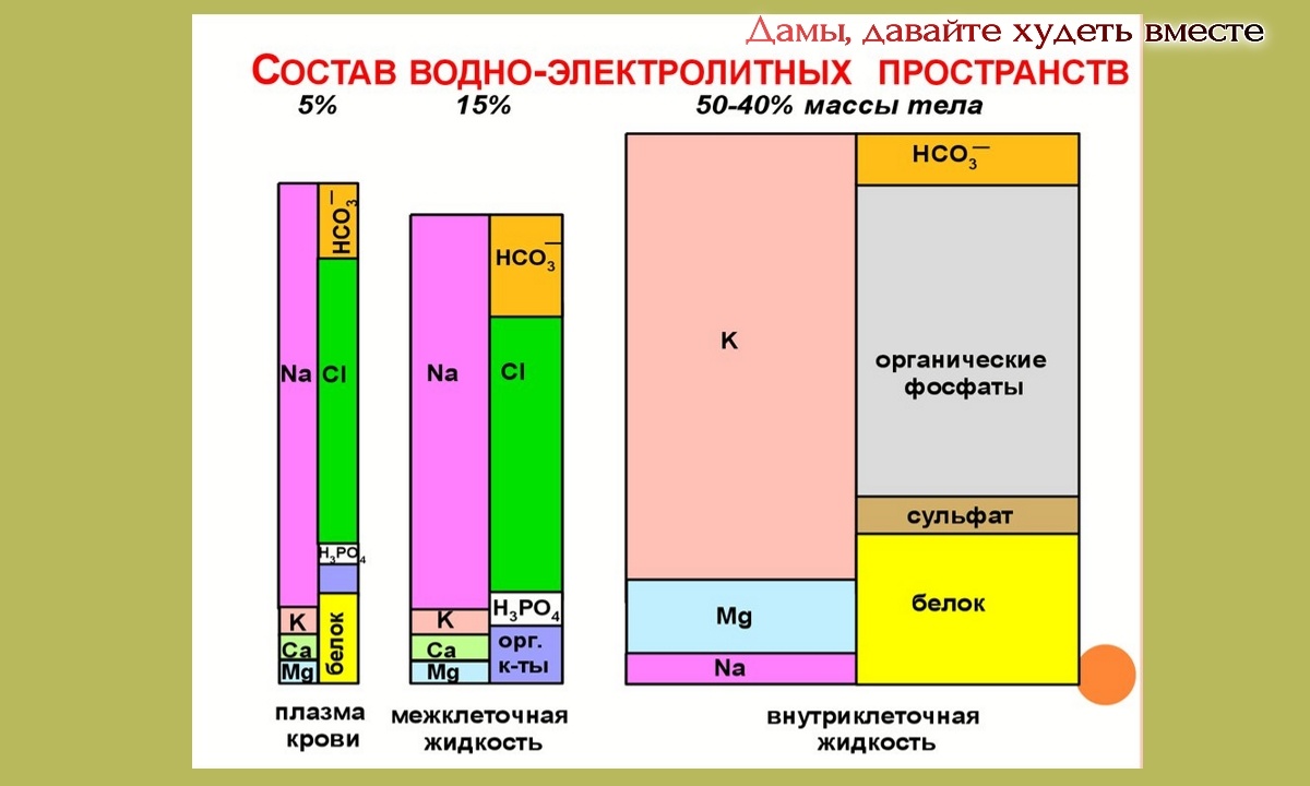 Ну и совсем коротко о том, что из себя представляет наша с вами внутриклеточная жидкость, смотрим картинку, не раз мною представленную в своих статьях, но она самая понятная и наглядная (на предмет содержания химических элементов):