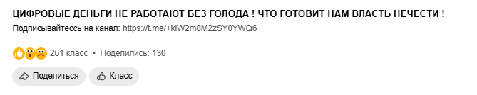 В соцсетях распространяют конспирологические идеи по вопросу цифрового рубля. В частности, в сети завирусился ролик, в котором утверждается, что цифровая валюта вводится как инструмент контроля за гражданами, чтобы вызвать нужду и голод. «Для того чтобы цифровые деньги заработали, в них должна быть нужда. Поэтому цифровые деньги работают только параллельно с голодом, в качестве «талонов» на продукты питания. Если власти в вашей стране вводят цифровые деньги, значит, они будут создавать голод», — говорится в видео. Подобные умозаключения — еще один современный миф. Сообщения о том, что цифровые деньги вводятся как средство контроля за людьми и их цель погрузить население планеты в «цифровое рабство», часто тиражируются в среде конспирологов. Волна подобных публикаций была зафиксирована после 1 августа 2023 года, когда в ЦБ РФ сообщил о внедрении цифрового рубля и создания соответствующей платформы. В запуске пилотного проекта по операциям с цифровой валютой задействованы 13 банков и огр
