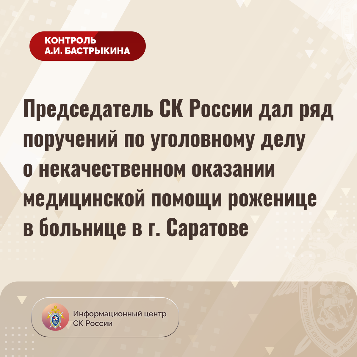 Председатель СК России дал ряд поручений по уголовному делу о некачественном оказании медицинской помощи роженице в больнице в г. Саратове