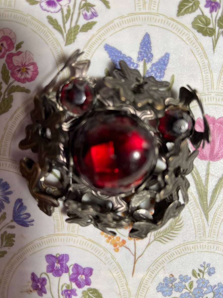 Добрый день! Сегодня хочу показать вам свою находку. Это редкая и очень старая брошь. По моей оценке, это вещь довоенная, скорее всего 30-е годы 20 века. Похоже, что Чехословакия, кустарная мастерская. В довоенное время в Чехословакии был расцвет бижутерного искусства. Вот в таком «убитом» виде она мне досталась. Грязная, погнутая, с отсутствием кристаллов. Я приняла решение реставрировать эту редкую вещицу. Скорее, даже, сделать рестайклинг. Это когда старые, поврежденные вещи дополняются новыми элементами, даже более современными, дающими возможность вещи полноценно существовать. Начала разбор броши и увидела, что центральная вставка очень и очень необычная. Я не видела такого никогда. Я даже не встречала такого кристалла у блогеров на Ютьюб, которые занимаются реставрацией антикварной и винтажной бижутерии. Такая вставка, ее форма, говорит о том, что это действительно эксклюзивная вещь, сделанная в какой-то маленькой мастерской. Центральный кабошон, это штампованное красное стекло,