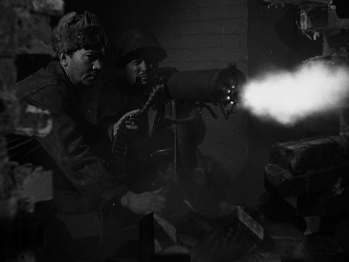 (Хилэри Бэллок «New Traveller») В американских фильмах про войну германии с СССР, снятых в 1941-1942 годах можно встретить пулемет «Виккерс» Mk I, который играет роль пулемета Максим в РККА, Не сказать, что очень похож, но лучше, чем, скажем, картечница Гатлинга.....
