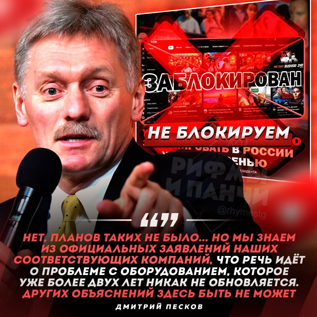 ❗️ «Ютуб не будут блокировать!», — Дмитрий Песков заявил, что в России не планируют ограничивать доступ к видеохостингу YouTube