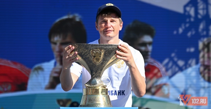 Сегодня, 12 июля, в амфитеатре на набережной в Волгограде состоялась встреча легенд российского футбола Андрея Аршавина, Юрия Жиркова, Романа Широкова, Евгения Алдонина и Валерия Есипова с болельщиками перед матчем за Суперкубок России между питерским «Зенитом» и «Краснодаром». Мероприятие посетило несколько десятков человек, среди которых были и немногочисленные болельщики «Зенита» и «Краснодара» в клубной символике и с командными шарфами. Общение проходило в дружеской атмосфере. Каждый из знаменитых футболистов выходил на сцену под аплодисменты публики и одобрительные выкрики со своим именем и фамилией. Сам трофей к болельщикам вынес Андрей Аршавин. Отметим, что большую часть вопросов знаменитым спортсменам задавали дети и подростки. Темы были затронуты самые разные, но в основном касающиеся карьеры каждого из экс-футболистов. Так, например, Аршавин на запросы аудитории ответил, что кумиров в его детстве не было, а самым сильным партнером, с кем он выступал в одной команде, был леген