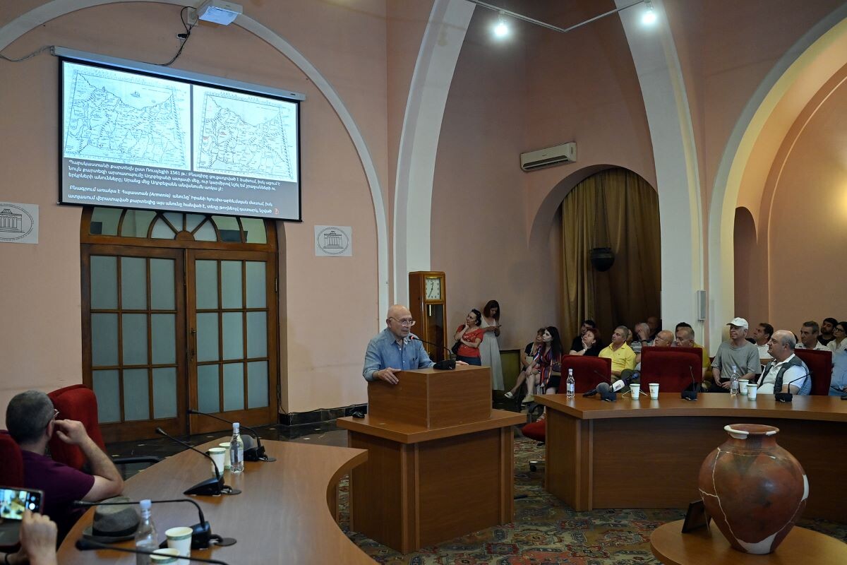 В НАН РА прошла презентация двуязычной книги географа, картографа, картоведа Рубена Галчяна «Исследование «исторических» карт Национального атласа Азербайджана 2014 г. и вымышленный термин «Западный Азербайджан»». Книга издана при финансовом содействии научно-аналитического фонда «Гегард». В презентации приняли участие автор книги Рубен Галчян, директор фонда «Гегард» Роберт Казарян, директор Института истории НАН РА Ашот Мелконян, доктор филологических наук Г. Мартиросян, доктор исторических наук, археолог Гамлет Петросян, депутат Национального Собрания Вилен Габриелян, представители МИД РА и офиса вице-премьера Мгера Григоряна, а также другие авторитетные ученые. С приветственным словом выступил Роберт Казарян, директор научно-аналитического фонда «Гегард». Приветствуя собравшихся, Роберт Казарян подчеркнул: «На данный момент у нас на столе есть важная работа. Фонд «Гегард» ведет всевозможную, каждодневную работу на разных языках, направленную против азербайджанских фальсификаций». Д