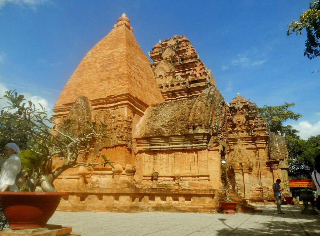 Программа очень насыщенная, но немного утомительная дорога. Но в пути, кроме того, что видишь красоты природы, зеленые горы и широкие блестящие на солнце реки, бескрайние рисовые поля и чайные плантации, похожие на изумрудный ковер, еще узнаешь много об истории Вьетнама и его традициях. Выехали в три часа ночи, зато уже к утру, с восходом солнца были уже в храме богине Понагар. Это очень почитаемая во Вьетнаме богиня, по духу практически аналог индийской богине Парасвати, жены бога разрушителя зла и обновления Шивы. Сам Шива – очень неоднозначный бог, с одной стороны это бог разрушения и огня, но это и не прямое воплощение зла, ведь он же отвечает за обновление, за сам процесс жизни, ее движение. А чтобы была жизнь, нужно движение, а не статичный покой.
