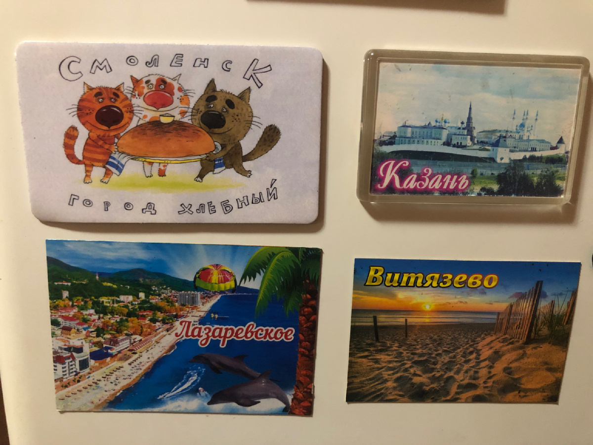 Нам, кстати, тоже ребята магнит привезли с надписью, но подробнее о подарках позже. Теперь мой холодильник со Смоленском))