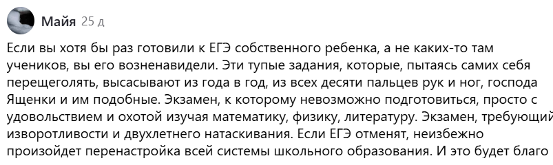 А ещё я знаю, что влиятельные силы не допустят отмену ЕГЭ. Поэтому, как нам недавно напомнил один хороший человек: