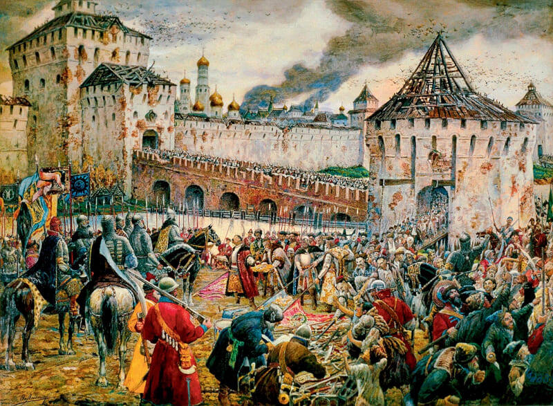 Василию III в 1533 г. наследовал его 3-летний сын, Иван IV. До совершеннолетия мальчика, регентом стала его мать, Елена Глинская, которой удалось провести ряд реформ до своей смерти в 1538 году. Реальная власть перешла в руки боярских кланов, приближенных к великокняжескому двору. Только в 1547 Иван IV был венчан на царство и власть вернулась в руки Рюриковичей. При нем был проведен ряд реформ в военной, судебной системах, в сфере государственного правления. К Русскому государству были присоединены: Астраханское, Казанское ханства, Западная Сибирь, Башкирия, территории Ногайской орды, начало зарождаться крепостное право. Однако, называть Ивана IV Грозным стали не за реформы. В его правление была проиграна затяжная Ливонская война и введена опричнина. Царь отличался особой жестокостью к инакомыслящим. Боясь притязаний на власть, царь расправлялся со своими родственниками – удельными князьями. Последним царем из династии Рюриковичей был сын Ивана Федор, болезненный человек, не способны