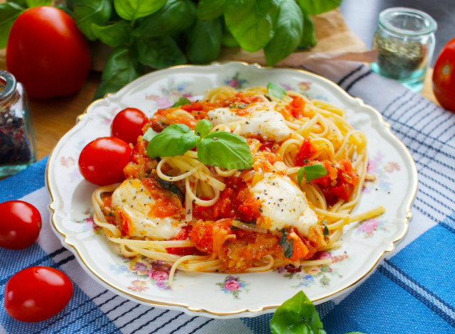 Очень вкусно и просто, ужин на скорую руку для всей семьи! Чтобы сделать спагетти с сыром и помидорами, вам понадобится всего 15 минут. Справится даже ребенок. Это блюдо - настоящая гармония вкуса. Продукты можно заменять и добавлять новые, получая новые сочетания Ингредиенты: 1. Спагетти 250 гр 2. Помидоры (среднего размера) 4 шт. 3. Лук 1 шт. 4. Чеснок 2 зубч. 5. Базилик по вкусу 6. Мягкий сыр (моцарелла) 125 гр 7. Растительное масло 4 стол.л. 8. Соль по вкусу 9.Перец черный молотый по вкусу Время приготовления: 15 мин Шаг 1: Шаг 2: Шаг 3: Шаг 4: Шаг 5: Шаг 6: Шаг 7: Шаг 8: