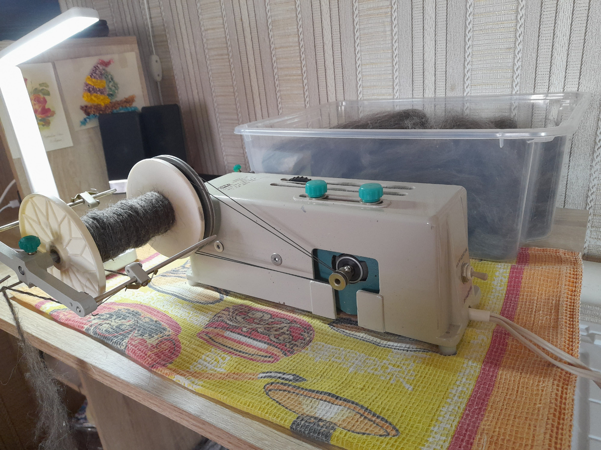 В вязании всегда хочется попробовать нового и необычного: спиц, пряжи, маркеров, книгу с чудными узорами. Так вот и с прядением. Решила я, что моя прялка БЭП-02 стала мне маловата, запросила душа простора, а руки новых ощущений. Хочу-значит будет. И вот я наисчастливейшая обладательница сего аппарата. Прялкой предыдущая хозяйка практически не пользовалась, причин не знаю. Ко мне приехала прялка в разобраном виде, помимо катушки и рогульки в комплекте имеется моталка для перемотки нити в пасму, электрическая педаль соответствено,два нитевых пассека и какая прелесть! Инструкция по применению. Собирается прялка быстро, перед работой необходимо её смазать, для этого на корпусе имеются два отверсти, внутри также имеются места для смазки они находятся на двигателе, там часто не надо смазывать. Ножки у прялки круглые пластиковые, скользят по поверхности стола, я простелила полотенце, но можно и коврик силиконовый. Скорость регулируется черненьким колесиком, а натяжение пассика зелененьким
