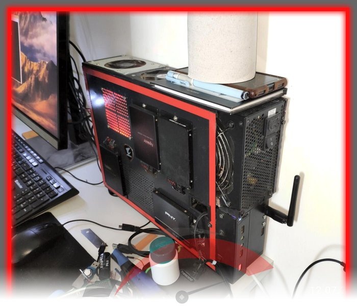 Для начала познакомлю вас с компьютером, это полноценный ПК в самодельном компактном корпусе, в процессе создания хейтеры так и бурлили желчью, мол, всё очень плохо, охлаждаться не будет, ничего не получится, "автор мудак" и прочий подобный бред изливали, но корпус завершён, а система собрана, и по сей день прекрасно работает несмотря на вопли так называемых "диванных экспертов":