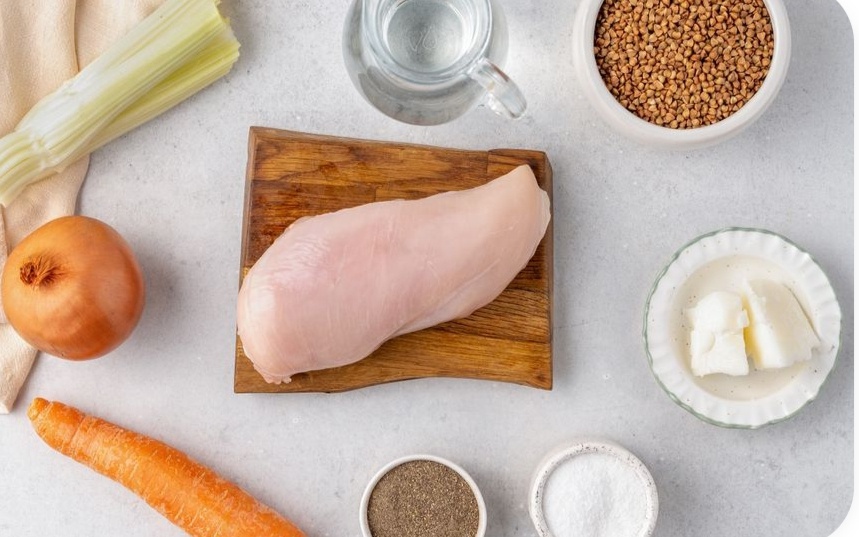 Куриная грудка с гречкой очень популярна у людей, следящих за фигурой, но зачастую вкус этого блюда хочется чем-нибудь разнообразить. Попробуйте добавить в него стебель сельдерея: в нем всего 13 ккал на 100 граммов. Сельдерей добавит блюду пряную, горьковато-сладкую нотку. Мы пожарили курицу с гречкой и овощами на кокосовом масле. Оно питательнее и полезнее сливочного. Могут быть аллергии на данные продукты: Сельдерей Убедитесь, что у вас нет индивидуальной непереносимости других ингредиентов. Нам понадобится: •Куриная грудка 100 г • Гречка 40 г • Вода 100 мл • Стебель сельдерея 30 г • Репчатый лук 20 г • Морковь 40 г • Кокосовое масло 1 ст. л. = 16 г • Соль по вкусу • Специи по вкусу Для подачи: Перец чили по желанию Базилик по желанию Начнем готовку Вымойте и обсушите бумажными полотенцами мясо. Промойте гречку. Ополосните овощи водой. Почистите морковь и лук. Удалите у перца плодоножку и семена. Подготовьте сковороду с высокими бортиками. Залейте гречневую крупу водой на три