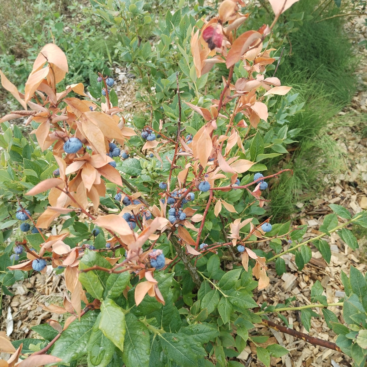Написать эту статью сподвиг меня вопрос моего читателя: "почему у голубики краснеет две ветки". Занимаюсь растениеводством всего шесть лет. То, что пишу исключительно мой опыт выращивания, наблюдения и понимания мира растительные культур. Первые кусты голубики мы посадили в 2018 году. Несколько лет подряд, пока растения были молодыми, мы часто наблюдали, что на некоторых кустах сохли ветки. Сейчас такое явление бывает крайне редко. Что же изменилось за последнее время? Три года назад завела книгу, в которую записываю всё, что мы делаем за сезон. Обработки от болезней и вредителей, внесение удобрений и результаты нашей агротехники. Когда все работы стали системой, это дало хороший результат. Кустов с засохшими ветками стало совсем немного. Но почему, при нехватке каких то элементов питания сохнет не весь куст, а одна или несколько веток? У меня сложилось мнение, что у растений заложен инстинкт самосохранения вида. Образно говоря, если чего-то не хватает, они эти ветки приносят