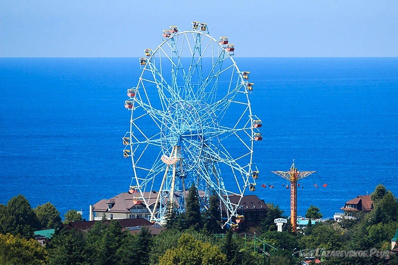 Самое высокое в России, на сегодняшний день, колесо обозрения находится в Сочи. Главный аттракцион Лазаревского парка имеет высоту 83,5 метра и находится на горе Ахун. Он был открыт в 2012 году по проекту Владимира Гездилова, известного конструктора, занимающегося строительством аттракционов не только в России, но и в Европе. Колесо имеет 28 кабинок двух видов: закрытые (вместимостью по 6 человек каждая) и открытые (вместимостью по 4 человека каждая). Полный круг чертово колесо проходит примерно за 8 минут. Можно ли за это время насладиться видом Сочи, Черным морем и Кавказским хребтом? Решать каждому из вас. Однако полюбоваться этим великолепием все-таки стоит.