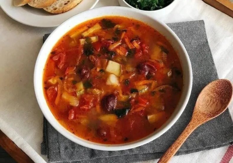 Фасолевый суп ⠀ Ингредиенты: Фасоль - 400 гр Картофель - 2 шт. Лук - 1 шт. Морковь - 1 шт. Болгарский перец - 1 шт. Сельдерей - 1 стебель Чеснок - 1 зубчик Цукини - 1 шт. Помидоры - 2 шт. Томатная паста - 1 ст.л. Соль и специи - по вкусу Зелень - по вкусу Масло - для обжарки ⠀ Приготовление: 1. Отварить фасоль. Овощи нарезать кубиками. Морковь натереть на тёрке. 2. Поставить кастрюлю с водой на огонь. Отправить в воду нарезанный картофель. Отварить. 3. Обжарить лук на растительном масле, к луку добавить мелко нарезанный чеснок, тёртую морковь, сельдерей, болгарский перец, цукини. Обжарить все овощи до готовности. 4. В готовые овощи добавить нарезанные помидоры, томатную пасту, специи, готовую фасоль и полстакана воды. Тушить всё минут 15. 5. Тушеные овощи с фасолью отправить в кастрюлю с отварным картофелем. Добавить зелень. Довести суп до кипения. Приятного аппетита!