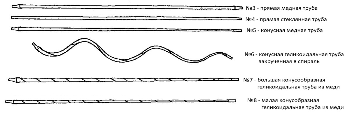 Т.е. характеристики следующих 3-х труб должны быть лучше. - ? Труба №6, коническая спиралевидная геликоидальная труба. Материал медь. Длина 1,45 м.