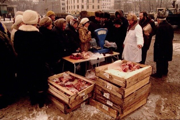 Девяностые же совсем иная пора. Стой или не стой, итог один. Еды на полках банально не было. С развалом Советского Союза нарушились все возможное торговые пути и связи. Это затронуло не только гастрономию, но и, например, промышленность. Ведь как было, двигатель собирали в Перми, шины брали в Барнауле, а везли это все в Минск на поездах, собранных в Тбилиси. Города условны, но суть одна — на благо страны работал весь Союз, кооперируясь исходя из своих мощностей и способностей. С развалом СССР прекратилось и былое сотрудничество. Появились границы да таможни, где-то к власти пришли обиженные и радикальные националисты и так далее… Процесс, складывающийся и развивающийся десятилетиями, в одночасье был разрушен.