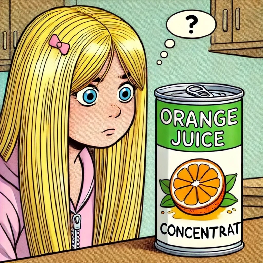 Why did the blonde stare at the orange juice can?