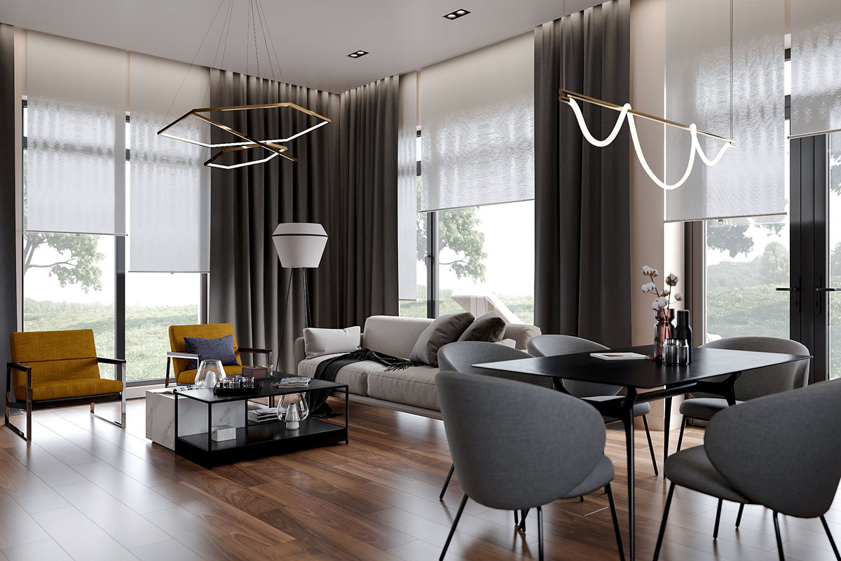 Проект интерьера для семейной пары, у которой уже взрослые дети и пришло время построить дом только для себя.