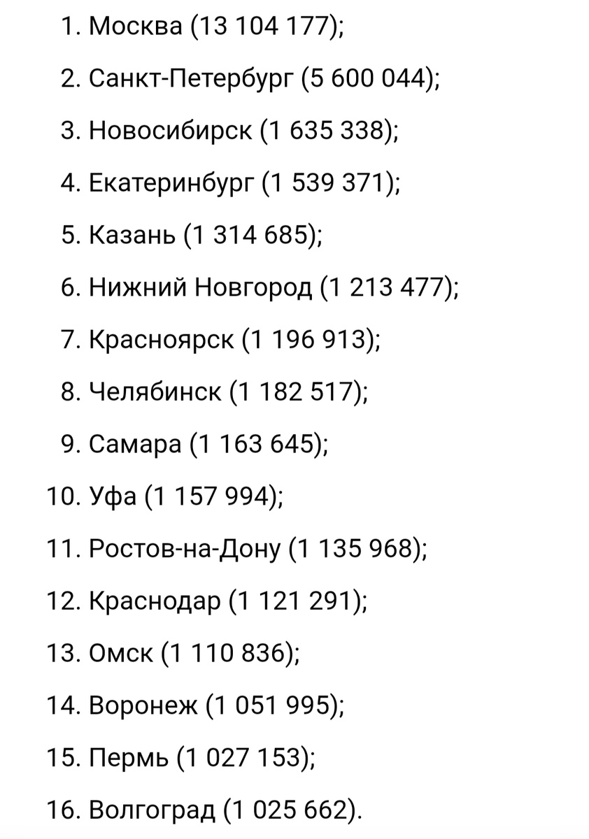 Вы когда-нибудь задумывались какие самые крупные города России?