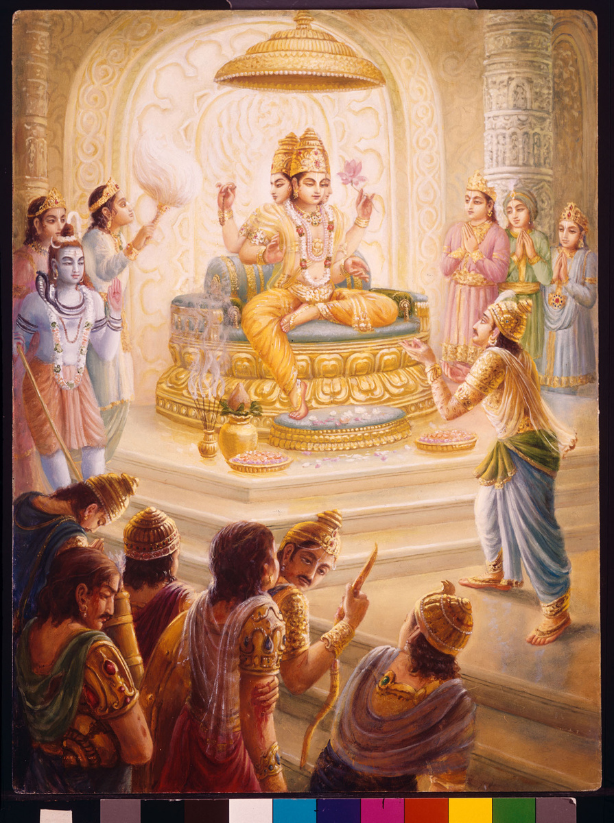 • Дэвы обращаются к Брахме, как к высшей авторитетной личности, и просят его помощи.
