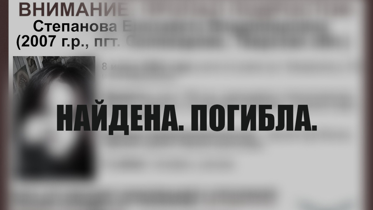 13 июля поздно вечером на ориентировке "Совы" о поиске несовершеннолетней появилась надпись: "Найдена, погибла". Как стало известно ТИА, тело девушки сегодня вечером было обнаружено в лесу в Селижаровском округе.