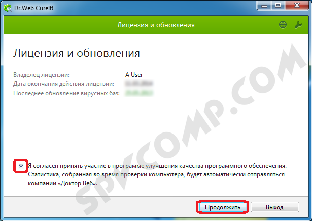 Как известно, антивирусы Dr.Web распространяются только платно, но компания предлагает пользователям опробовать бесплатный сканер Dr.Web CureIt!. Утилита запускается единовременно для проверки компьютера на наличие вирусов и вредоносных программ и не может являться альтернативой полноценному антивирусу, работающему в режиме реального времени. Однако Dr.Web CureIt! может оказаться хорошим дополнением к защите вашего компьютера, если вы используете один из бесплатных антивирусов. Тогда можно время от времени проверять систему этим сканером. Рассмотрим, как пользоваться Dr.Web CureIt! и его настройки. Скачиваем Dr.Web CureIt! и запускаем. В следующем окне необходимо поставить галочку, что вы согласны, что статистика сканирования вашего компьютера будет отправляться в компанию Dr.Web (это обязательное условие бесплатного использования сканера). Затем нажимаем кнопку Продолжить. Теперь произведем некоторую настройку сканера перед использованием. Нажимаем на гаечный ключик в правом верхнем у