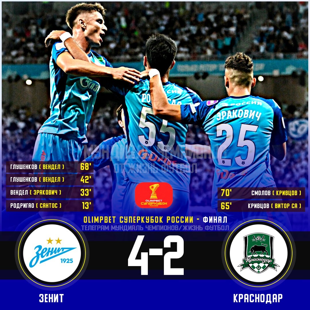«Краснодар» бился до конца, но этого недостаточно, чтобы победить «Зенит» и забрать трофей. Те ребята, что на Кубке Америки, нам бы сейчас помогли» Мурад Мусаев прокомментировал поражение в матче за OLIMPBET Суперкубок России. – Нужно было играть более внимательно. Проигрывали дуэли один в один. – Выделите позитивные моменты – Позитивный момент – это второй тайм. И то, что после счета 0:3 не бросили играть. Рад, что бились до конца, но этого недостаточно, чтобы победить «Зенит» и забрать трофей. – Кого сегодня больше не хватало? – Да всех не хватало. Кордобы, Оласы… Проблемы были на флангах обороны. Не хочу кого‑то выделять в плохую сторону, но те ребята, что на Кубке Америки, нам бы сейчас помогли. – Как реагировать на очередной проигранный трофей? – Все мужчины и не должны ломаться. Это часть работы. Во втором тайме отдали все силы, что самое главное, – отметил главный тренер «Краснодара». «Если «Зенит» побеждает, значит, заслуживает этого. Глушенков провел потрясающий мат