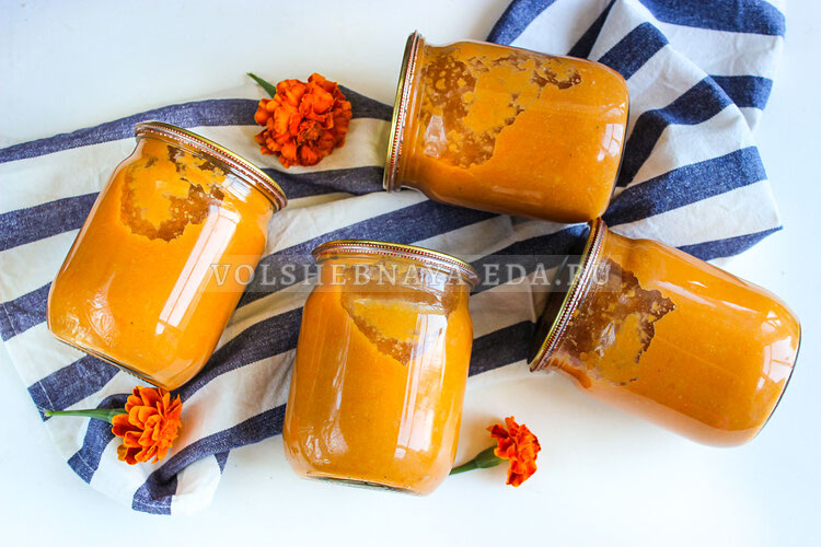 Рецепт кабачковой икры, которую я сегодня вам предлагаю, очень похож на ту икру, которая продается в магазине. Такая же нежная, абсолютно однородная, аппетитного оранжевого цвета. Вкус ровный, «кабачковый», совсем немножечко с кислинкой (из-за томатной пасты и уксуса — он добавляется в минимальном количестве как консервант, всего лишь 1 столовая ложка на весь объем продуктов). Готовить удобнее всего в мультиварке — не нужно переживать, что подгорит, да и сама икра не будет «стрелять» брызгами по всей кухне (потом помыть мультиварку нужно будет, конечно, особенно внутреннюю часть крышки). Если у вас нет мультиварки, то можно сварить икру в большой кастрюле или в казане. Не волнуйтесь, на качестве это никак не отразится, результат будет точно таким же. Выход из указанного количества ингредиентов — 4 банки по 0,5 л. В рецепте была использована мультиварка Elenberg Multicooker MC-15 мощностью 860, чаша объемом 4 л. Овощи нужно подготовить заранее: помыть, очистить, взвесить. Обратите внима