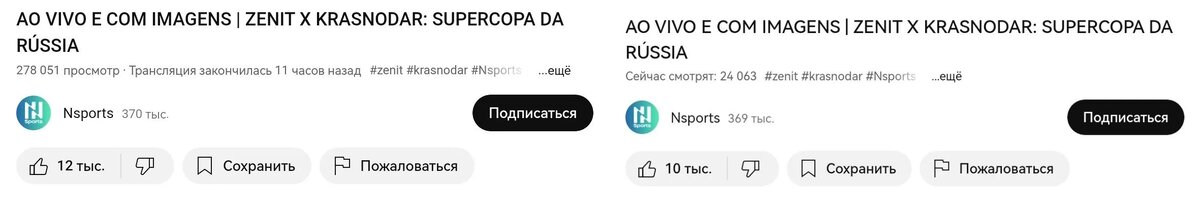 Встреча между «Зенитом» и «Краснодаром», состоявшаяся в рамках Суперкубка России, вызвала приличный интерес в Бразилии. Количество просмотров трансляции матча, которую вел YouTube-канал N Sports эксклюзивно для бразильской аудитории, оказалось свыше 278 тысяч. На пике аудитория игры составляла 24 тысячи зрителей. Интерес бразильцев к матчу за Суперкубок России во многом связан с трансферными новостями о грядущем переходе полузащитника «Зенита» Клаудиньо во «Фламенго» – возможно, поединок с «Краснодаром» стал для 27-летнего атакующего хавбека последним в составе сине-бело-голубых. Обладателем трофея вновь стал питерский клуб, переигравший «быков» со счетом 4:2. Посмотреть видео