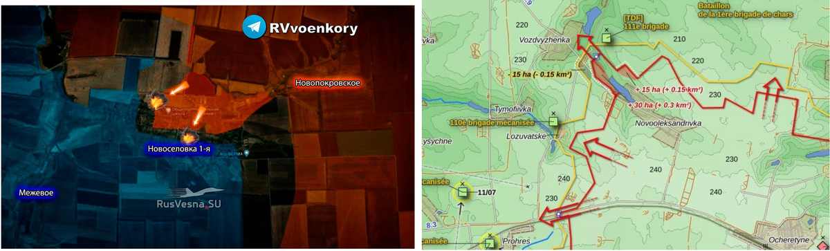 ➖"Также русские продвинулись на 0,45 км к югу от Воздвиженки (Покровский р-н), подойдя к окраинам населённого пункта".