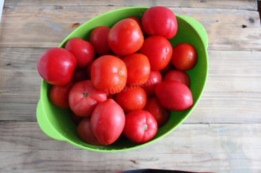 Нежные, приятные на вкус, ароматные, на скорую руку. Сладкие помидоры на зиму - это вкусная закуска с необычным ароматом и привкусом, которые томатам придают такие специи как гвоздика, корица и чеснок. При желании вкус можно добавить другие любимые пряности. ПОШАГОВОЕ ПРИГОТОВЛЕНИЕ Время приготовления: 40 мин ШАГ 1: Как заготовить сладкие помидоры на зиму? Подготовьте необходимые ингредиенты. Помидоры лучше использовать не крупного размера, чтобы они вместились целыми в банку, и спелые, но плотные, чтобы при заливке кипятком они не лопнули. Помидоры тщательно помойте под проточной водой и сложите в дуршлаг, чтобы с них вода стекла. ШАГ 2: Банки помойте содовым раствором и простерилизуйте одним из удобных способов: на водяной бане, в микроволновой печи или в духовке. При стерилизации банок в духовке ставьте их на решетку обязательно влажными горлышком вниз. Крышки помойте и прокипятите либо простерилизуйте вместе с банками в духовке. ШАГ 3: Зелень тщательно промойте и просушите бумажным