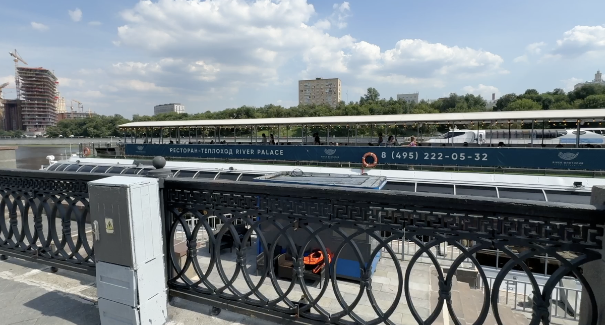 Давно хотел прокатиться на теплоходе по Москве-реке. После долгих поисков и изучения отзывов мы выбрали теплоход «River Palace». Поскольку наш канал посвящён кулинарии, сегодня я не буду рассказывать о маршруте — он великолепен. Ознакомиться подробнее с маршрутом можно на сайте теплохода, здесь мы не об этом. Стоимость билета на теплоход составляла 1200 рублей с человека, питание не включено. Отправление было с причала «Сити-Экспоцентр», расположенного рядом с деловым центром «Москва-Сити», в 15:00. Продолжительность маршрута — 3 часа. На корабль нужно приходить заранее, потому что мы пришли за 10 минут до отправления, и уже не было свободных столиков с хорошим видом из окна. К тому же, многие люди приходят заранее и занимают места у окон. Нам пришлось выбирать столики во втором ряду. Сам теплоход двухэтажный. На втором этаже также есть столики. Однако стоит учесть, что эта палуба открытая и не имеет кондиционера. В жаркую погоду даже на корабле с кондиционером на первой палубе может