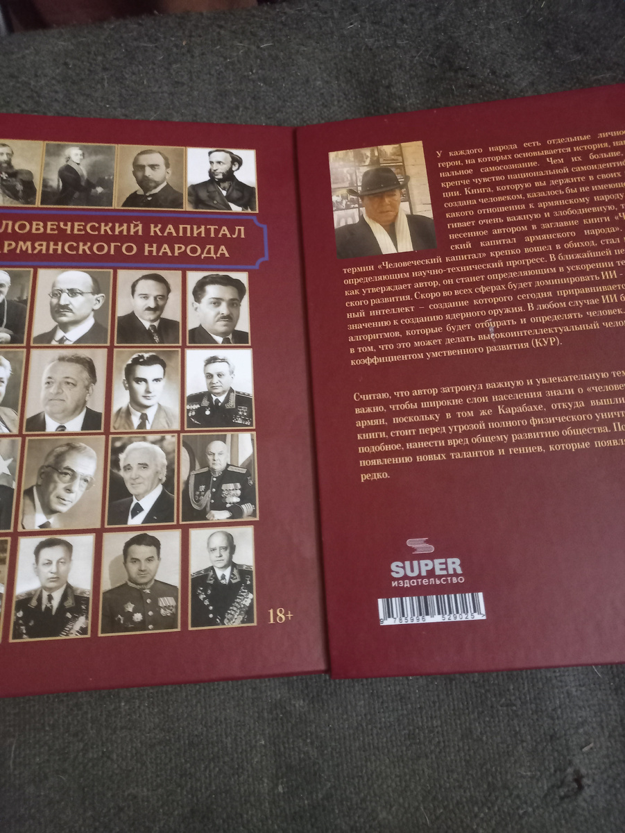 Санкт-Петербургское Издательство "Супер" выпустило в свет книгу хорошо известного в Армении журналиста Эдварда Сахинова под названием "Человеческий капитал армянского народа". По мнению автора, армянский народ сегодня переживает тяжелые времена и в частности стоит перед выбором дальнейшего пути своего развития. Подчиниться обстоятельствам и принять чуждое отвратное мировоззрение, пораженчество и конформизм, могущий провести не только к потере государственности, но и к потере основ национальной самоидентификации под давлением находящейся у власти агрессивной посредственности или же возродить традиции рыцарей национального достоинства.