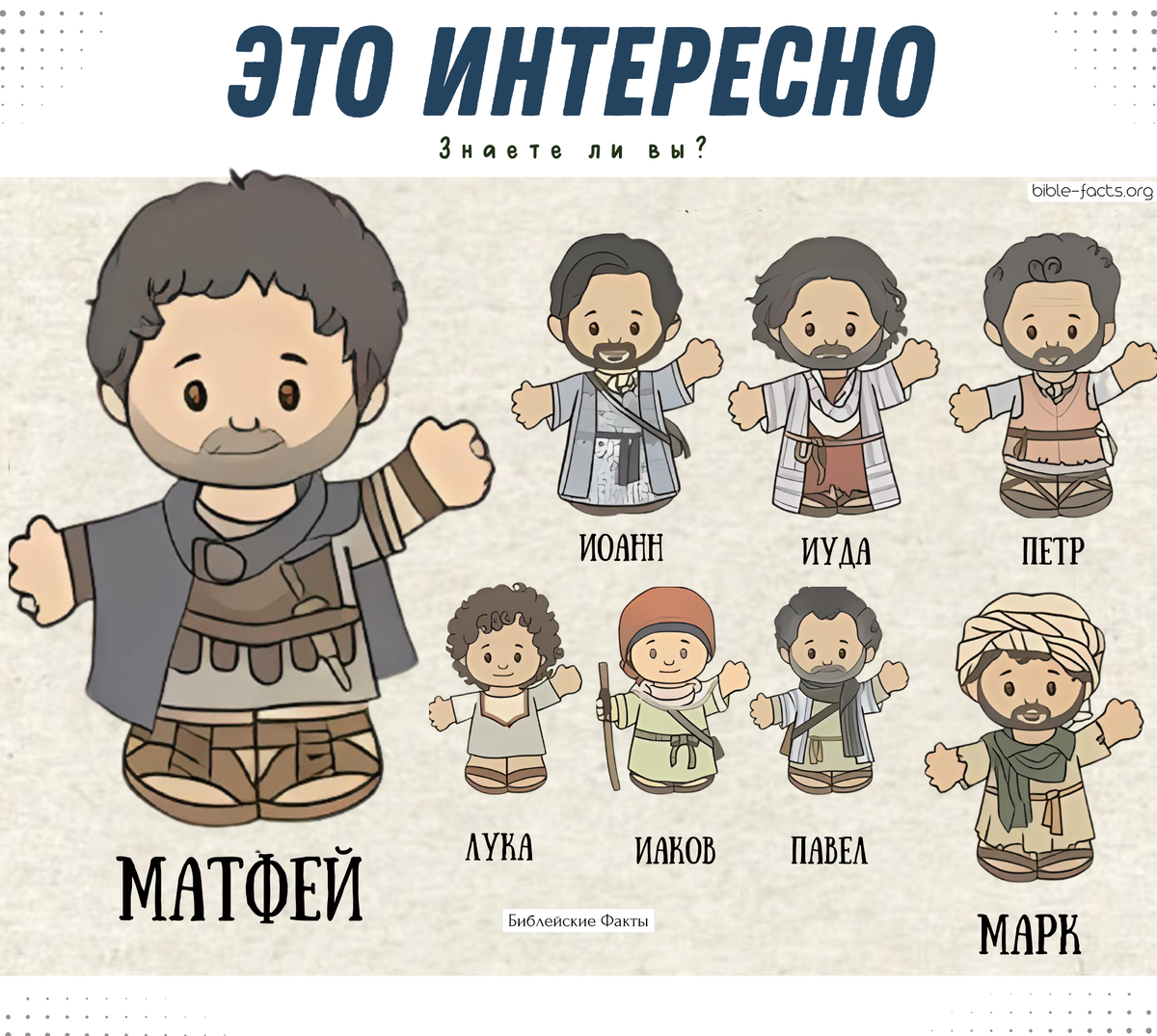 Новый Завет насчитывает всего 8 Боговдохновенных мужей, которые написали канон Евангелия: Матфей, Марк, Лука, Иоанн, Петр, Павел, Иаков и Иуда.