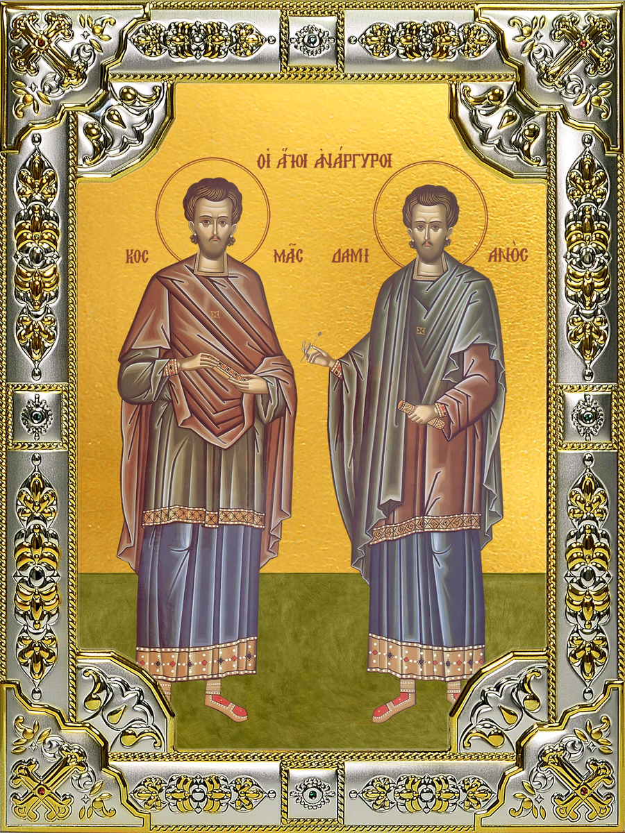 Бессребреников Космы и Дамиана, в Риме пострадавших (284). Сщмч. Аркадия пресвитнра (918); сщмч. Алексия диакона (1942). Мч. Потита (II). Прп. Петра патрикия (854). Прав. Ангелины, деспотиссы Сербской (XVI). Прп. Никодима Святогорца (1809). Косма и Дамиан – родные братья, родом из Рима, врачи по профессии, приняли мученическую кончину в Риме при императоре Карине (283–284). Воспитанные родителями-христианами в правилах благочестия, они вели строгую, целомудренную жизнь и были удостоены от Бога благодатного дара исцеления болезней. Своим добрым и бескорыстным отношением к людям, соединенным с исключительным милосердием, братья многих обращали ко Христу. Святые обычно говорили больным: «Не своей силой мы врачуем болезни, а силой Истинного Бога. Веруйте в Него и будете здоровы». За бескорыстное лечение недугующих святых братьев называли «безмездными врачами». Действенное служение ближнему, духовное воздействие на окружающих, многих приводившее в Церковь, привлекло внимание к братьям римск