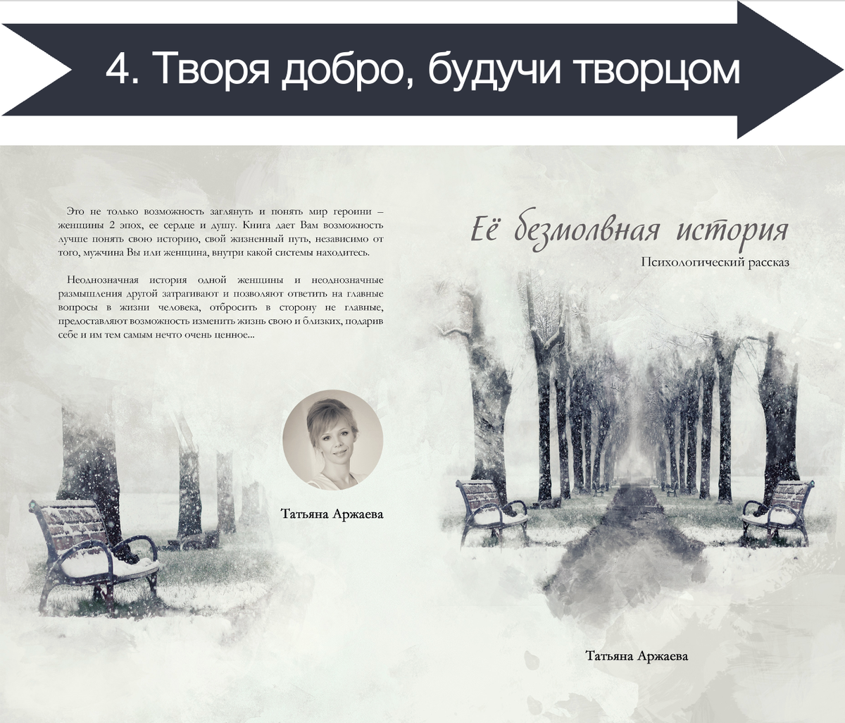 В глазах Ирины пожилая женщина в свободных одеждах темного цвета, которая сидела напротив, была творцом добра, и в ней был светлый стержень. Но Елена Петровна творила не только добро, у нее была масса и других талантов. И она действительно была творцом в полном смысле этого слова!