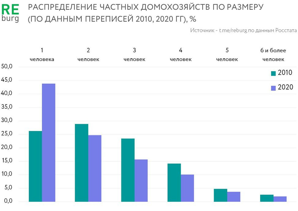 Средняя площадь квартир, вводимых в эксплуатацию в последние годы продолжала падать. А между тем, новые ориентиры для отрасли связаны не объемами стройки, а обеспеченностью на 1 человека. Ближайшая цель - 33 кв. м на 1 жителя к 2030 году. По итогам 2023 средняя площадь квартир, выведенных на рынок снизилась до 48,7 кв. м (по данным проектных деклараций, опубликованных в Единой информационной системе жилищного строительства). Исходя из целевых ориентиров - типичная полуторка. Но ведь среди целей еще озвучивается поддержка семей и покупателей с детьми. Почему тогда мельчают квартиры? Давний тренд на сокращение площади квартир связан с несколькими процессами: