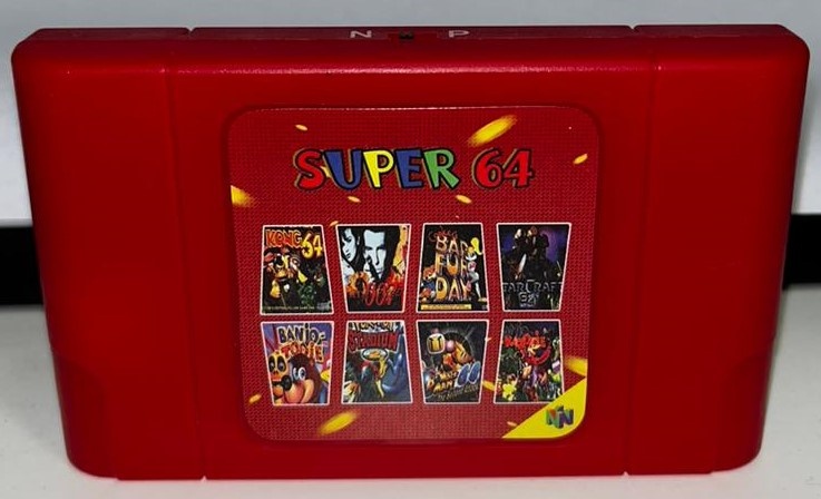 Этот картридж имеет красный корпус с наклейкой, на которой изображены некоторые игры для Nintendo 64. В отличие от обычных картриджей, он не изогнут сверху. На верхней грани расположен переключатель, позволяющий выбрать регион: NTSC или PAL. В комплекте с картриджем идёт карта памяти на 16 ГБ. Это позволит вам установить на неё все желаемые игры. Также хочу поделиться информацией о сохранении игр. Если игра в прошлом сохранялась на картридж, то вам нужно будет просто сохранить игру в процессе игры и нажать кнопку Reset, чтобы записать сохранение на SD-карту. Однако если игра сохраняется на Controller Pak, то вам понадобится иметь его при себе. Подводя итог, можно сказать, что Super 64 — это самый доступный флеш-картридж и возможность поиграть в игры на Nintendo 64. За всё время использования этого флэш-картриджа я не обнаружил никаких недостатков. Всего хорошего, увидимся позже.