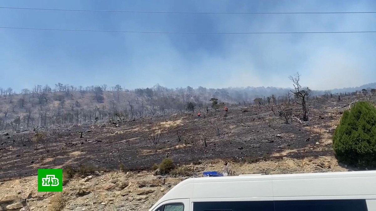 Мощный пожар в районе Абрау-Дюрсо перекинулся на базу отдыха