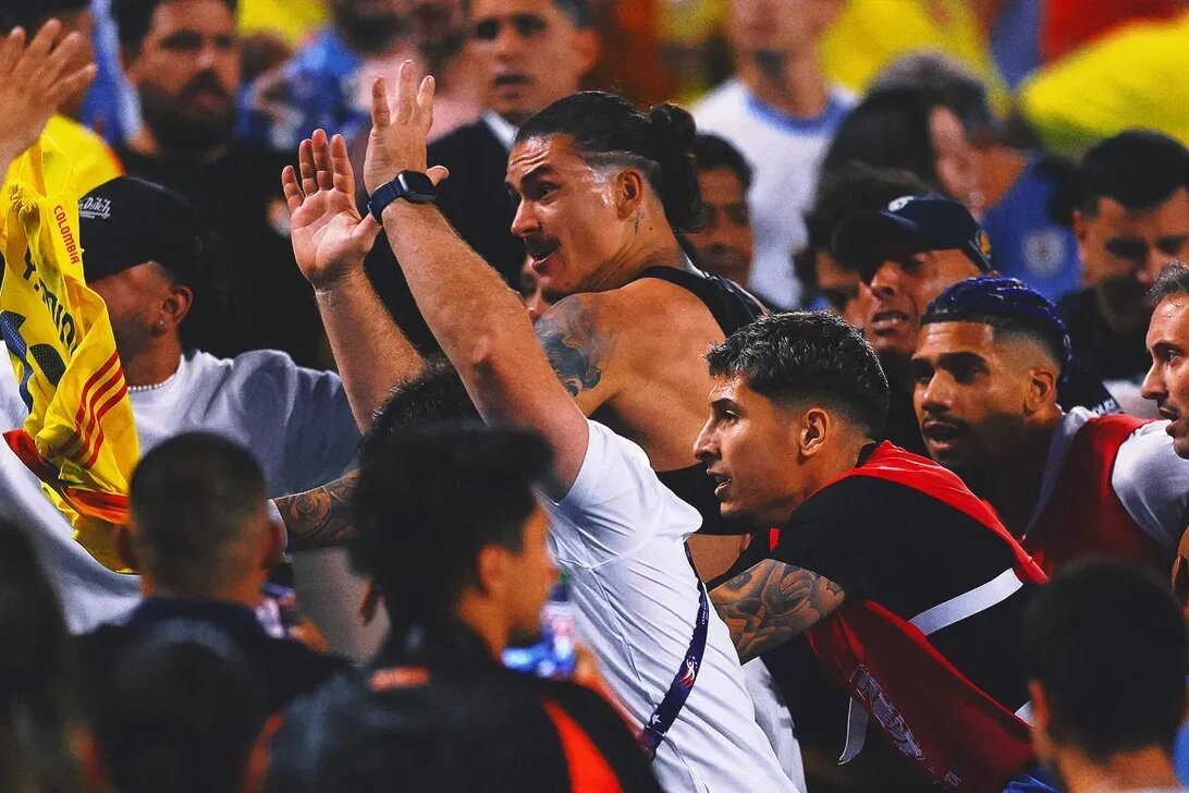 По ходу полуфинала Колумбии и Уругвая полицейским и стюардам на стадионе хватило ума пустить нетрезвых болельщиков колумбийской команды к сектору, где располагались семьи игроков Уругвая. Разумеется, колумбийцы начали провоцировать мужчин из числа родственников. Также кричали непристойные вещи в адрес женщин и детей. В результате после матча Нуньес из «Ливерпуля» и его напарники бросились защищать семьи, ведь жены перепугались из-за нетрезвой толпы.