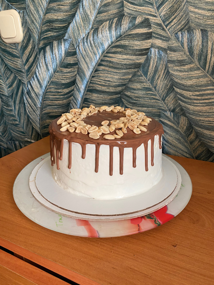 Для приготовления шоколадного бисквита нам понадобится: Для приготовления шоколадного крема нам понадобится: Для приготовления крем чиза нам понадобится: Для приготовления солёной карамели понадобится: Так же, в карамель добавляем солёный жаренный арахис. Пошаговый рецепт: Бисквит: 1) Взбить яйцо с сахаром до пышности; 2) В отдельной миске смешать все сухие ингредиенты и добавить их частями к взбитому яйцу с сахаром; 3) Выливаем бисквитное тесто в заранее подготовленное кондитерское кольцо и отправляем в духовку разогретую до 170 градусов на 40-50 минут; 4) Как бисквит будет готов, даём ему полностью остыть, вынимаем из кольца и отправляем в холодильник на ночь. Шоколадный крем: 1) Шоколад топим в микроволновой печи импульсами по 15-20 секунд, постоянно перемешивая; 2) Взбиваем сливки 33% с сахарной пудрой до пышности; 3) В отдельную миску перекладываем 1/3 часть сливок и 1/3 часть шоколада, хорошо перемешиваем. Когда видим, что крем перемешался - добавляем остатки сливок и шоколада;