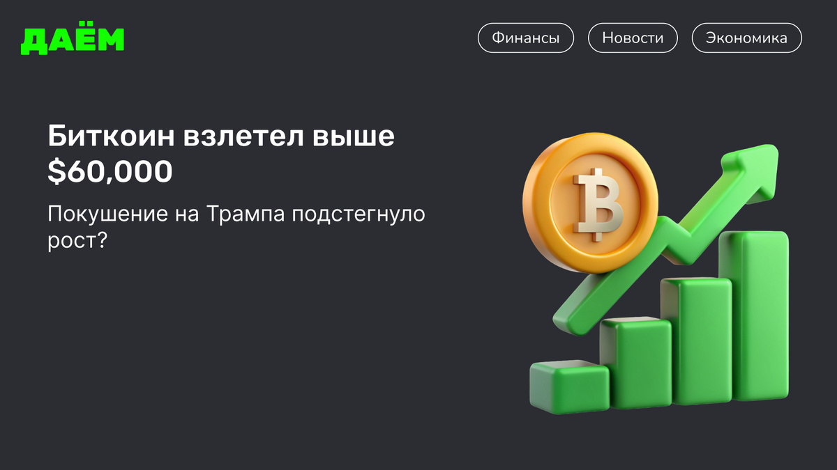 Биткоин взлетел выше $60,000: покушение на Трампа подстегнуло рост?