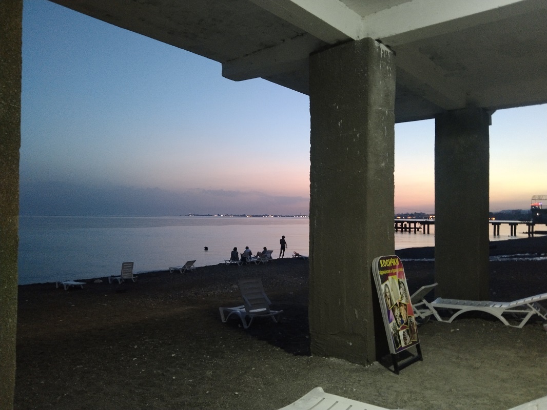 Положа руку на сердце, в Абхазии мне всё-таки июнь нравится больше, чем июль. Если кто-нибудь когда-нибудь мне в моём Пскове скажет про влажность, я, наверное, рассмеюсь ему в лицо и предложу съездить в Абхазию в июле. Ещё когда жарит солнце, то более или менее полотенца сохнут, но стоит солнышку забежать за тучку - это капец, ничего не может высохнуть при такой жуткой влажности. Гулять днём мне больше не хочется, потому что потеешь постоянно, моё льняное платье кажется влажным и тяжёлым и его хочется постирать после каждой прогулки. Наверное, потому абхазы и не толстеют, что на такой жаре и есть не хочется, а питьё почти сразу испаряется вместе с потом. Я теперь иду на море к 9 час и купаюсь, загораю там до 12 час, а потом опять прихожу к 18-19 час и плаваю до заката, а то и больше. РАССКАЗ ПОЖИЛОГО СУХУМЦА Недавно разговорилась на пляже с пожилым сухумцем, который раньше работал в Айтаре. Он сказал, что в давние советские времена, когда не было кондиционеров, горожане частенько пр