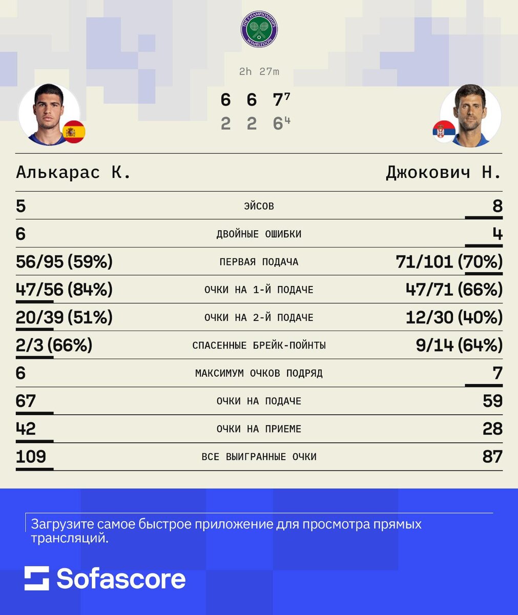 Испанский теннисист Карлос Алькарас стал победителем Уимблдона, третьего в сезоне турнира «Большого шлема». В финальном матче испанец, третья ракетка мира, победил серба Новака Джоковича, который занимает второе место в мировом рейтинге, со счетом 6:2, 6:2, 7:6 (7:4). В прошлом году Джокович и Алькарас также встречались в финале Уимблдона, испанец тогда победил в пяти сетах. 21-летний Алькарас выиграл четвертый турнир «Большого шлема» в карьере. На его счету также есть титулы на «Ролан Гаррос» (2024) и US Open (2022). Супруга принца Великобритании Уильяма, принцесса Уэльская Кейт Миддлтон посетила этот финальный матч. Для нее это второе появление на публике после того, как она в марте объявила о своей борьбе с онкологическим заболеванием. Миддлтон является покровителем Всеанглийского клуба лаун-тенниса и крокета с 2016 года и по традиции вручает трофей победителям Уимблдона в женском и мужском разрядах. Однако в этом году она пропустила женский финал, в котором накануне чешка Барбора К